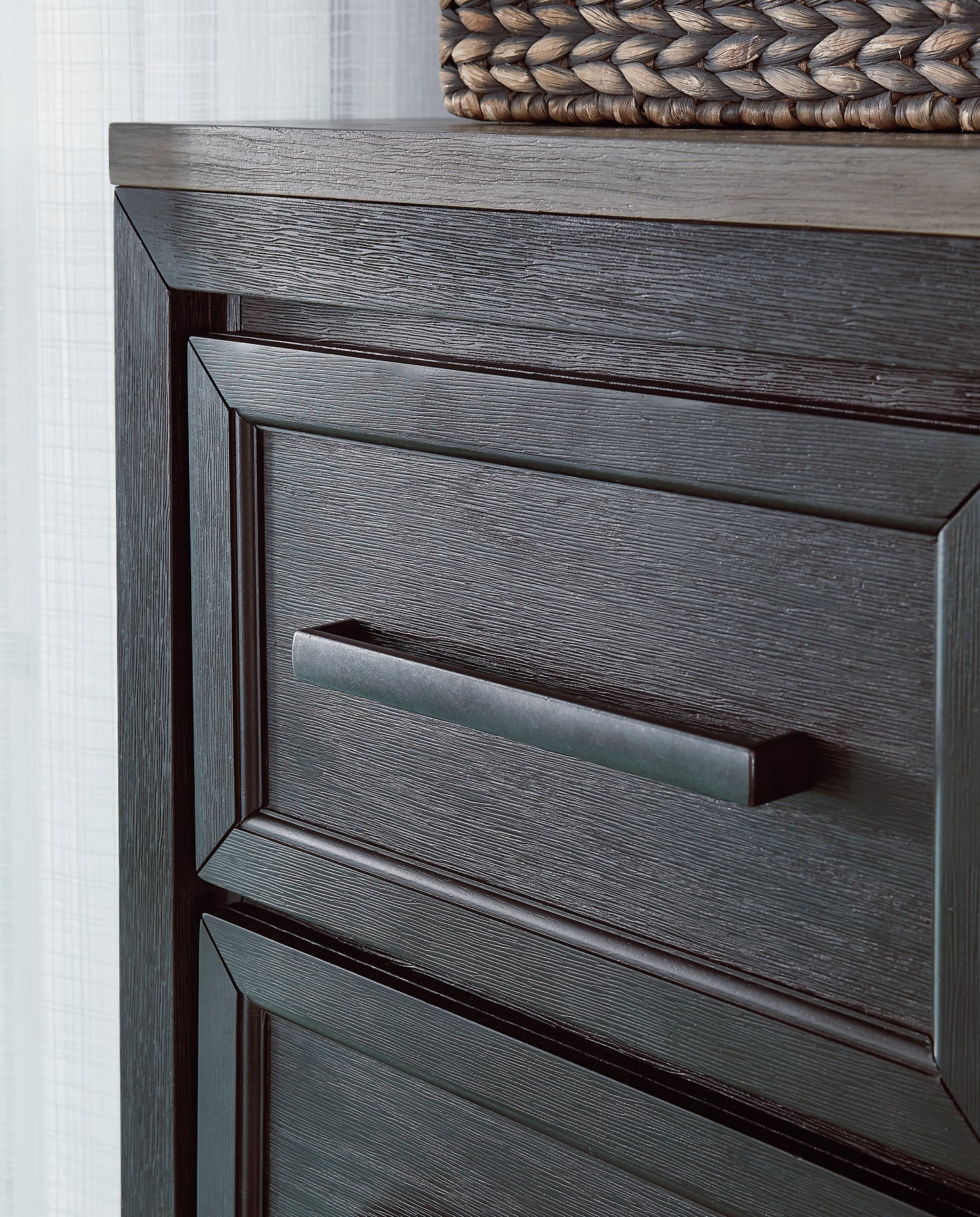 This dresser is casual contemporary style simply done right. Its two-tone color scheme features a rich brushed black main color accented with a beautiful dusty grayish brown wood tone. With 11 soft-close drawers (three located neatly behind each door) this dresser offers plenty of storage to accommodate your wardrobe needs with ease.