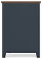 | Details | Made with hardwood solids, mindi wood veneer and MDF substrates, Two-tone finish features a dark slate blue with a light brown wood-tone top, Nickel-tone metal knobs, 4 drawers with fully finished interior, dovetail construction and heavy duty ball-bearing side glides | |